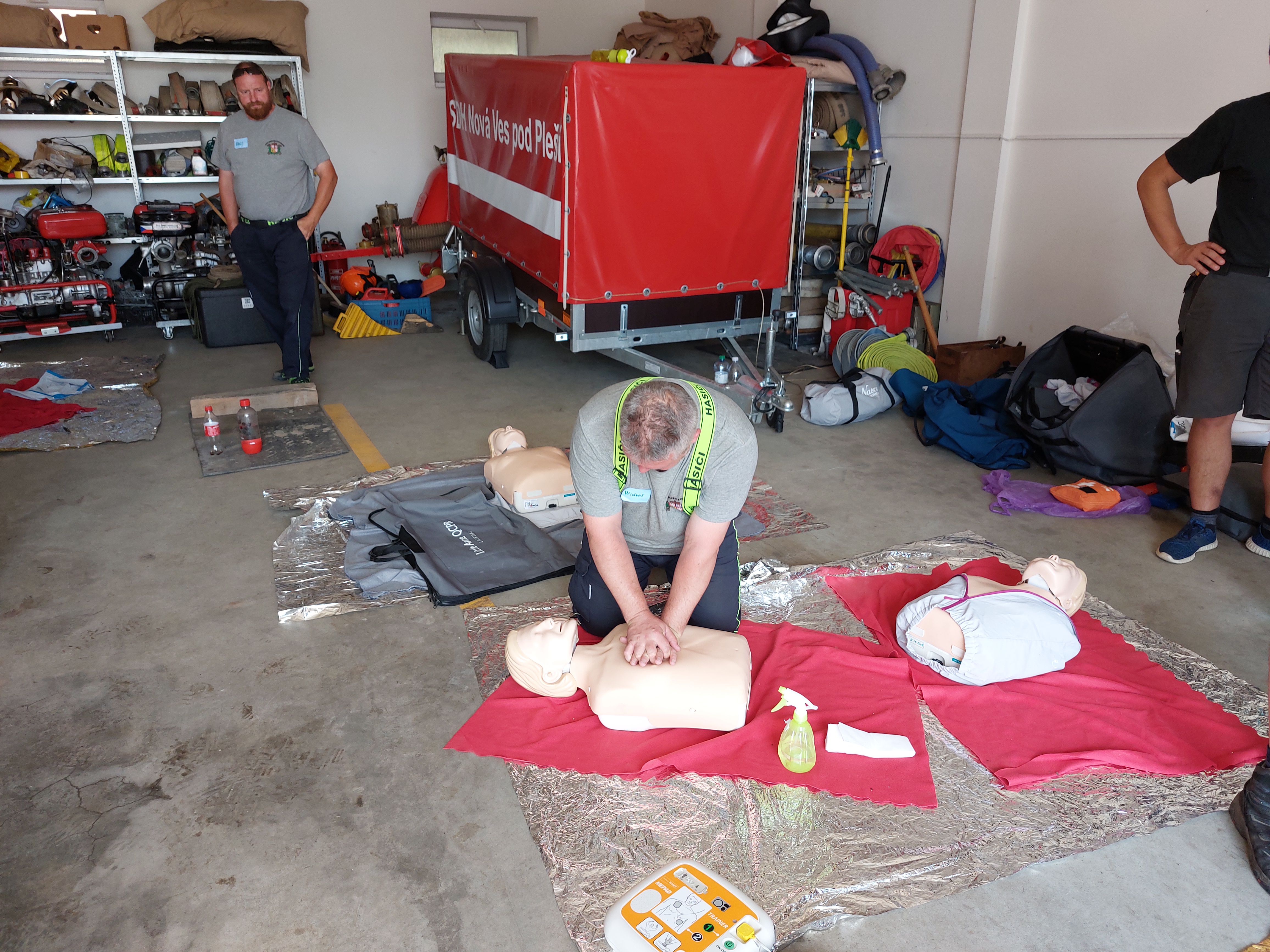 Velký dík patří Michalovi Jedličkovi z SDH Nové Vsi pod Pleší, který vše zařídil nejen pro své členy, ale i pro nás ostatní. Díky také patří lektorům Zuzce, Verče a Tomovi z První pomoci živě.