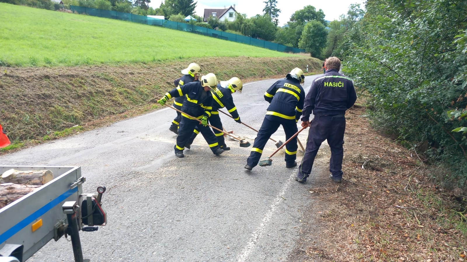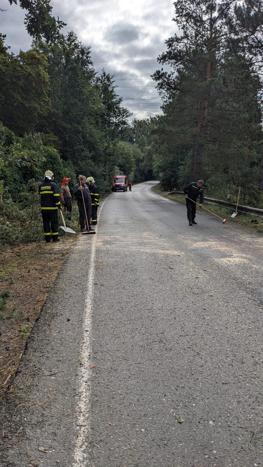 - Činnost jednotky na místě zásahu: rozmístění členů k zajištění plynulosti dopravy, pokácení a úklid 5-ti stromů ohrožujících provoz na komunikaci.