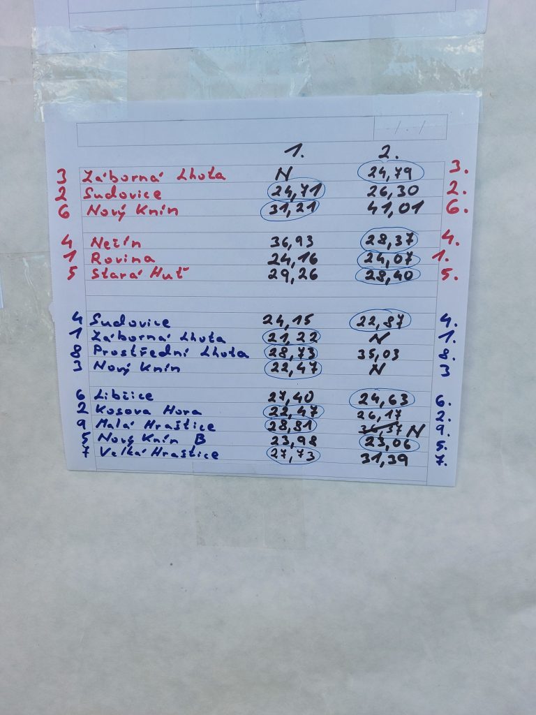 Po obědě už soutěžili dospělí. Ženy po těsném rozdílu vybojovaly druhé místo. Bohužel muži neobhájili loňské stříbro a tak muži A obsadili čtvrté místo a muži B páté místo. Celý den nám vydrželo krásné počasí a tak jsme si soutěž výborně užili.