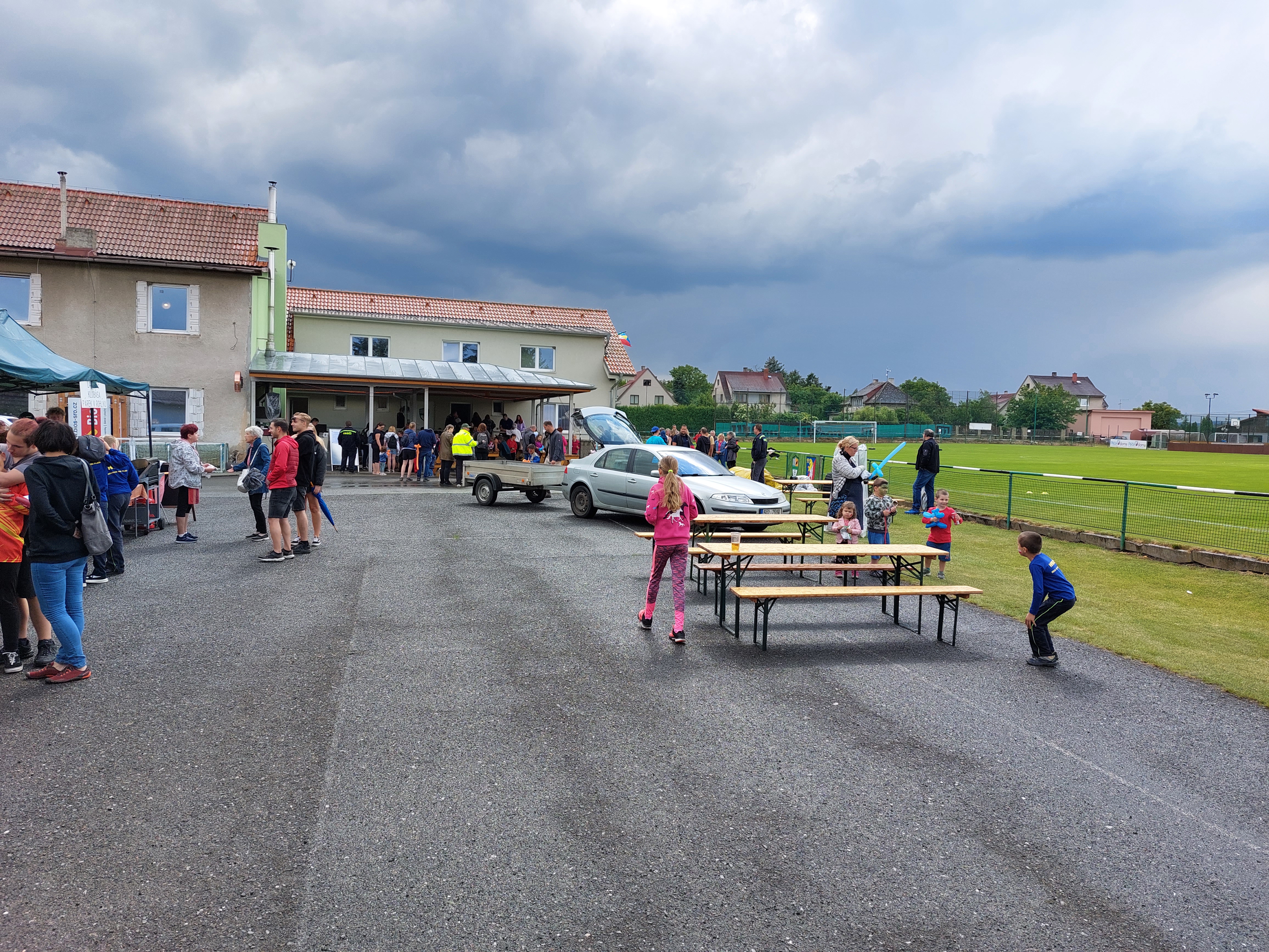Sešli jsme se na fotbalovém hřišti v 12:00. Připravili zázemí pro náš tým dospělých a čekali na slavnostní nástup. Po nástupu začaly klasické útoky dětí, které hned po prvním družstvu překazila pořádná průtrž mračen. Nakonec si všechna družstva svoje útoky odběhala. Nám se bohužel děti nesešly.